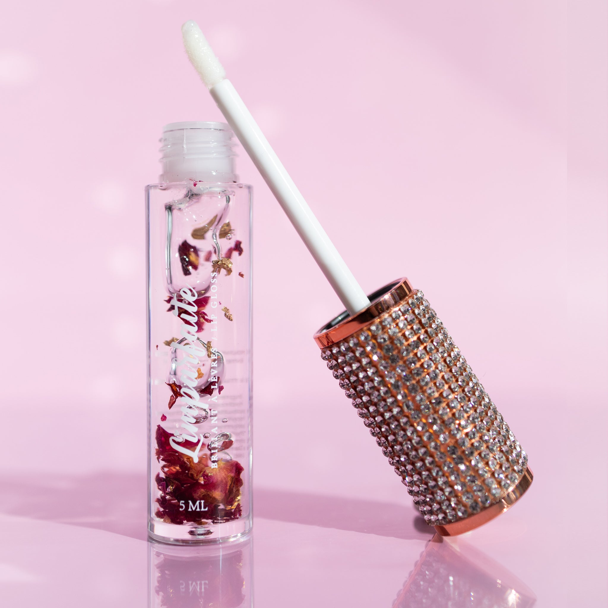 For all lovers of vegan and cruelty-free beauty, our BOSSY 2.0 lip gloss is the ultimate choice. Carefully handcrafted, this gloss offers a radiant, non-sticky finish embellished with little wonders: golden flakes and delicate rose petals. The transparency of BOSSY 2.0 lets your lips shine with a subtle touch of splendor.